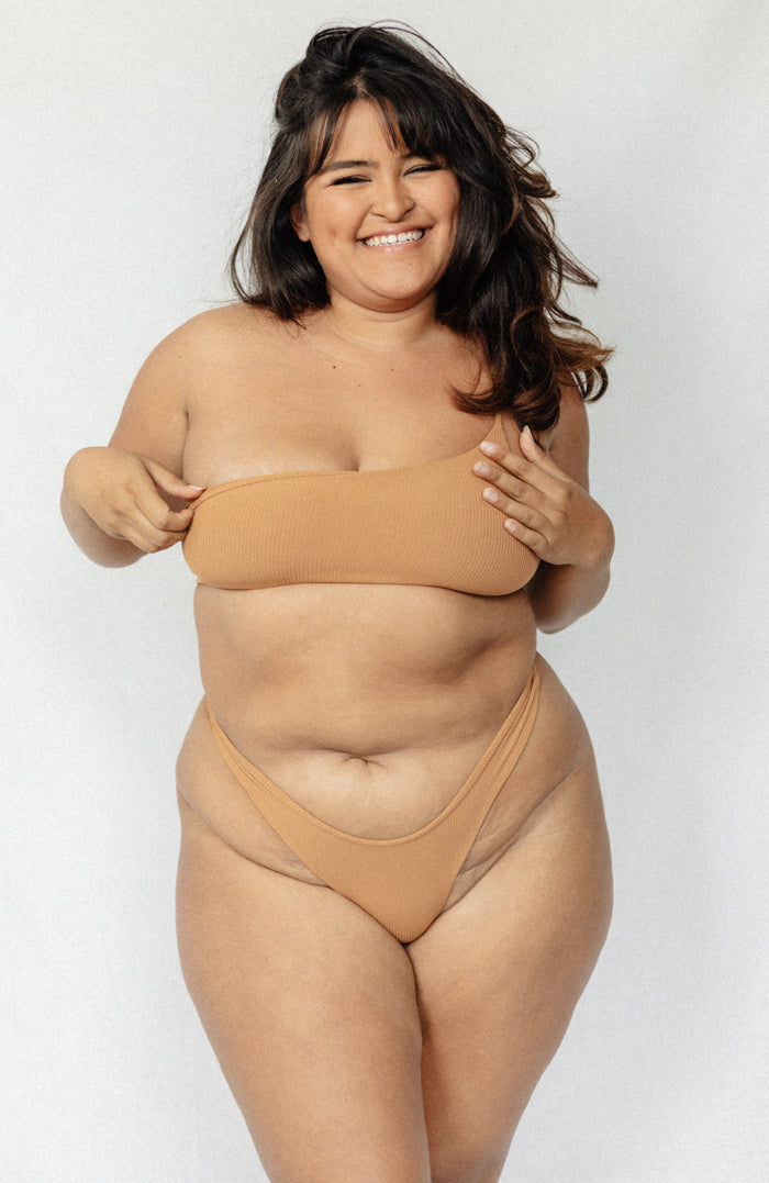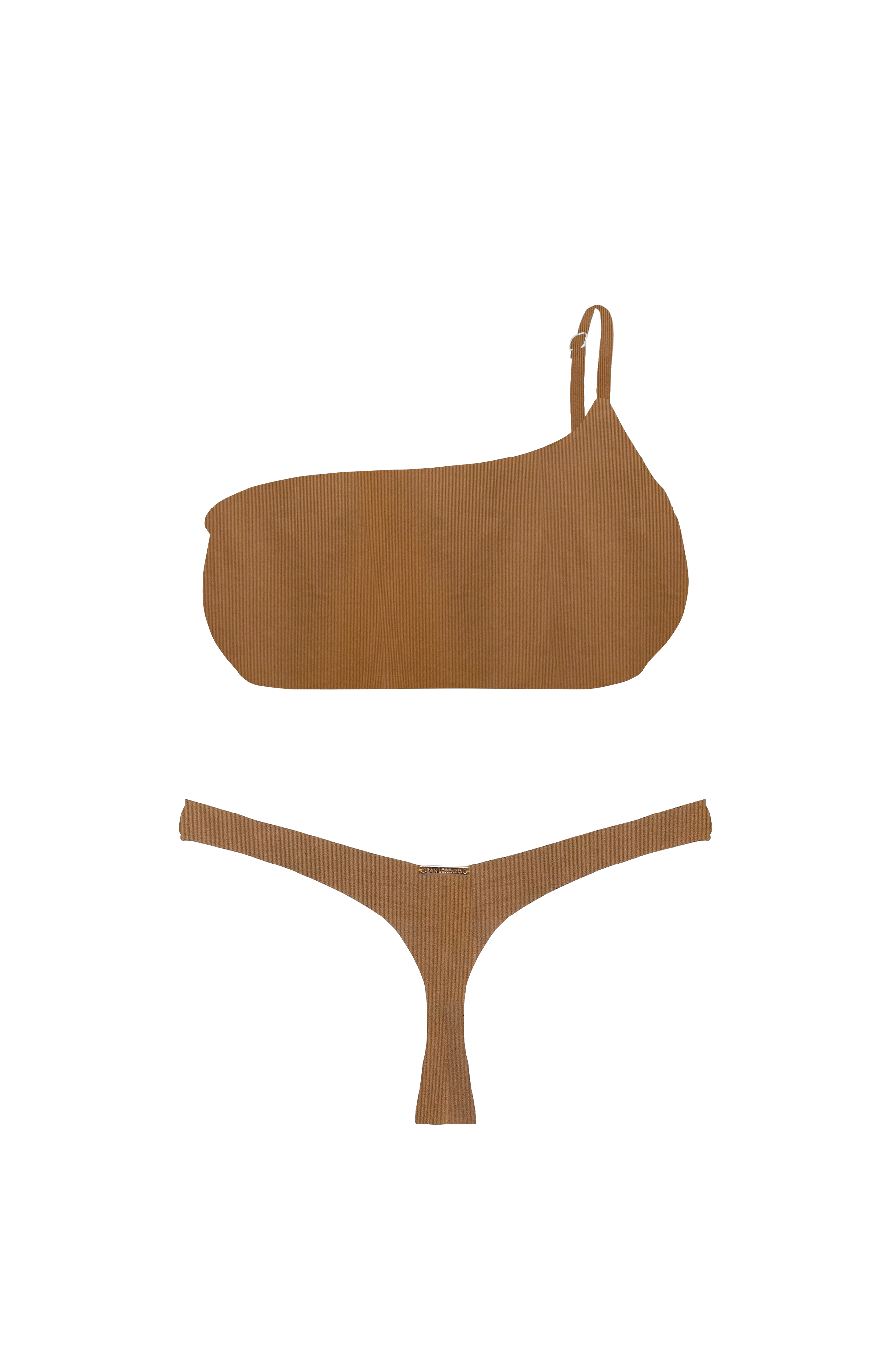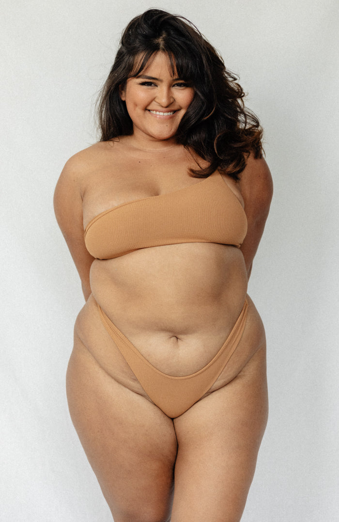 ANIMAL Camel Ribbed One-Shoulder Bandeau Bikini Top