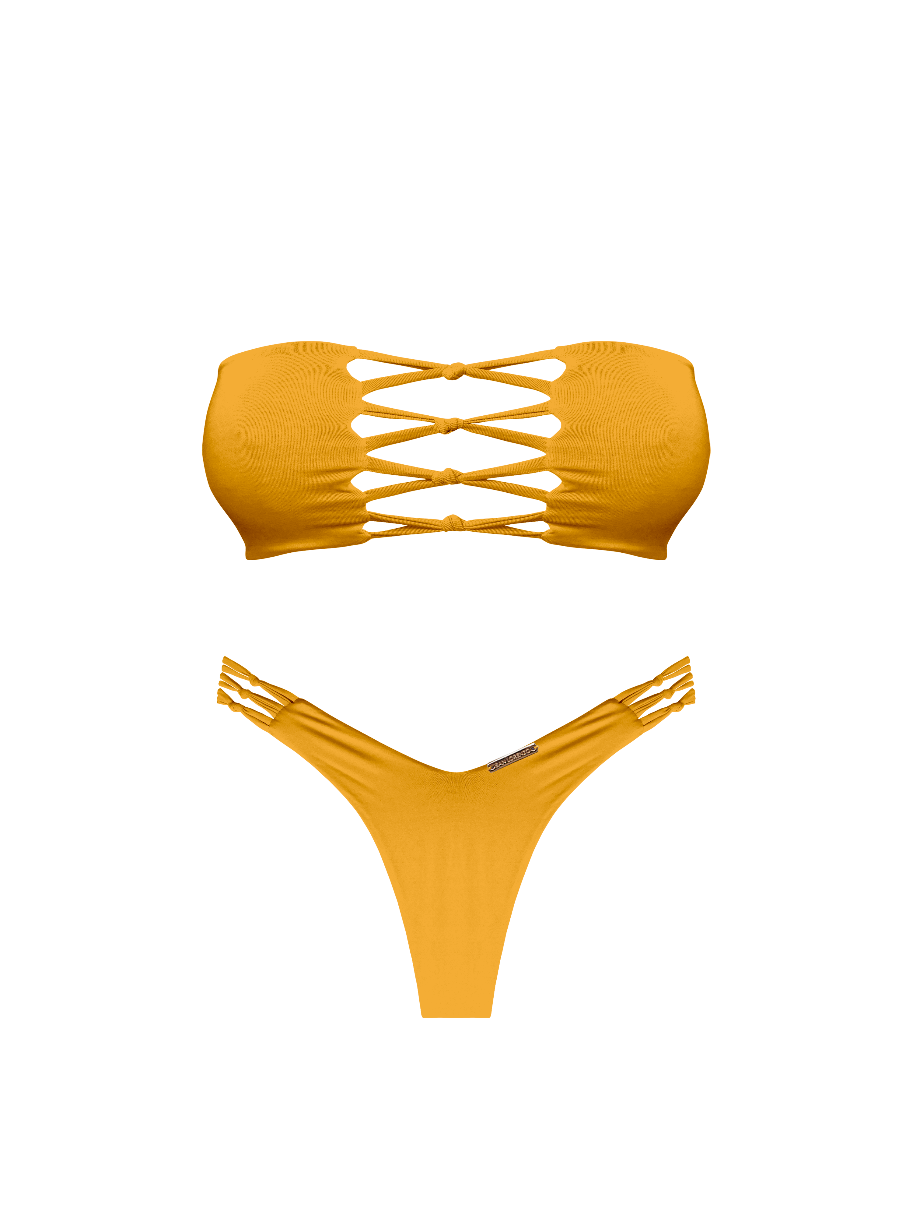 Make a bold statement with our Braided Bandeau Bikini Top. This unique piece features a classic strapless silhouette with a modern, eye-catching twist: an intricate braided detail at the center front that adds a touch of bohemian-chic style. The soft fabric is gently pulled together by the striking interlacing, creating a comfortable and sophisticated look that is both stylish and daring.
