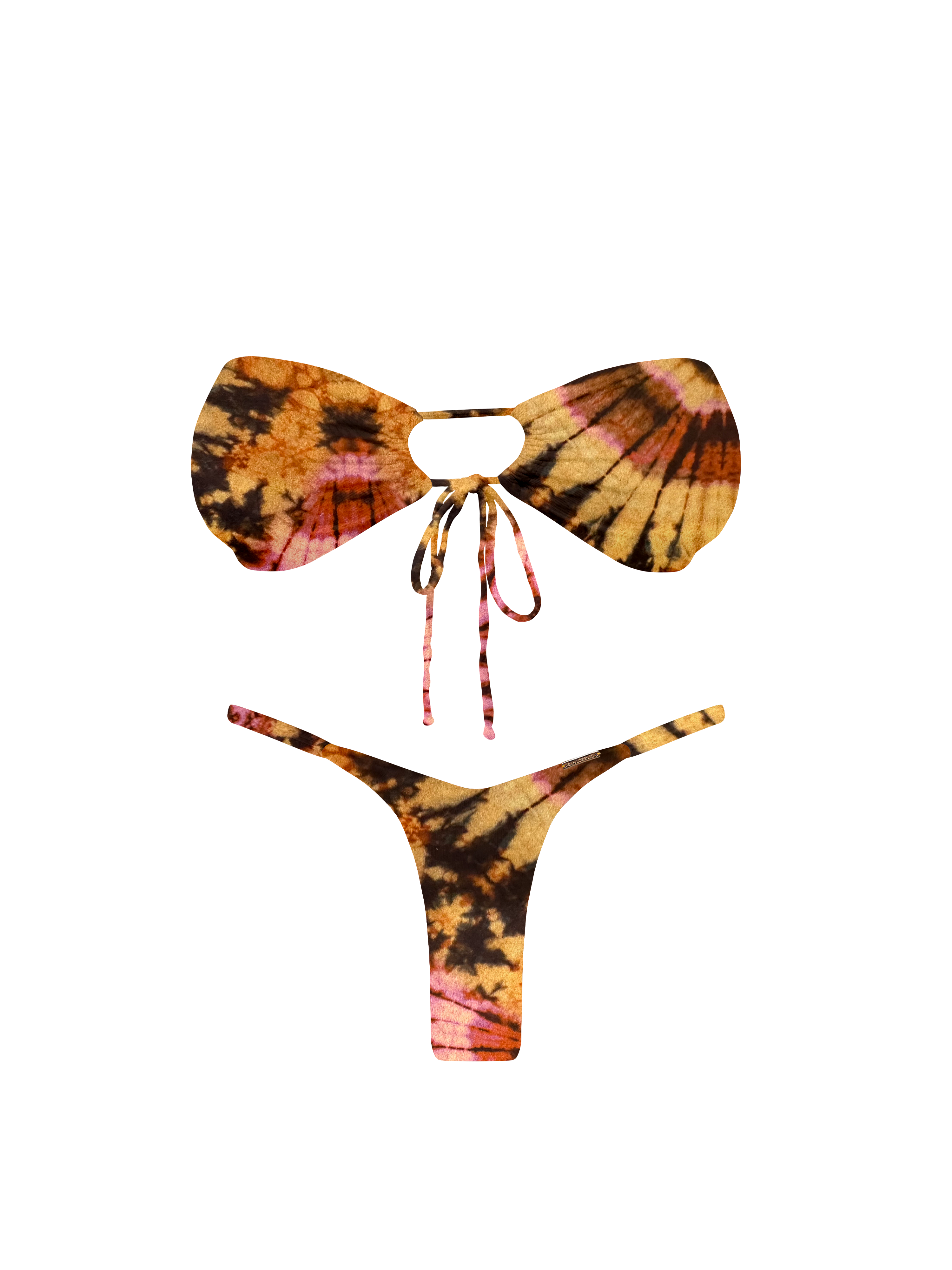 Embrace modern allure with our Bandeau Bikini Top. This stylish piece features a strapless silhouette and a unique front tie detail that creates a chic keyhole cutout, while also allowing you to adjust the fit. The fabric is ruched at the center, providing a flattering and sophisticated look perfect for a seamless tan. A must-have for a confident and contemporary beach style.