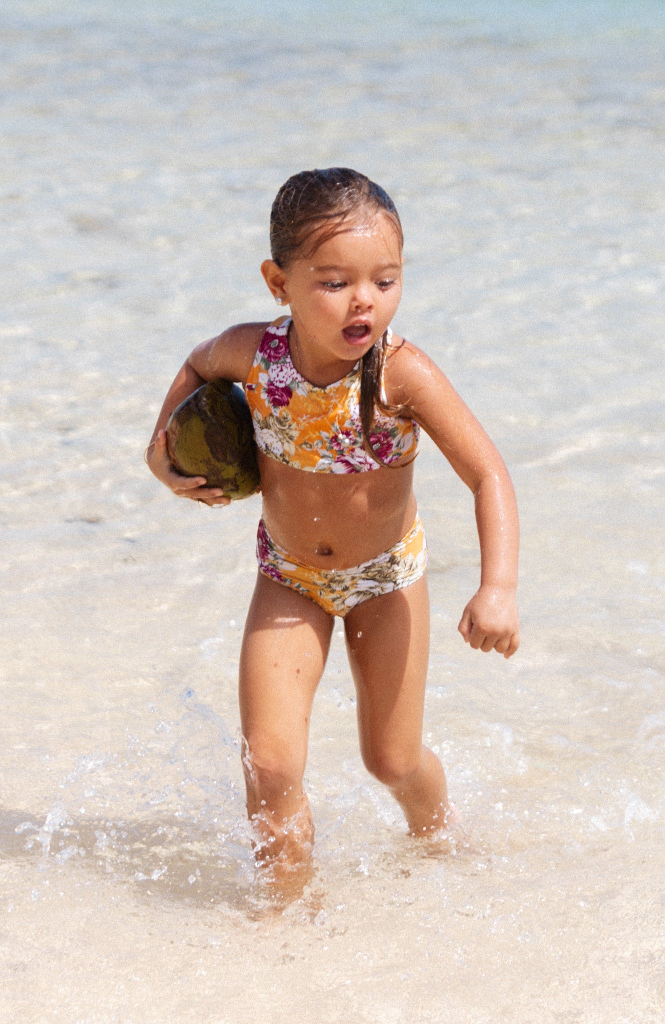 Elevate your little one's beach style with our Keiki High Neck Top and Brief Bottom set, designed to match mom's ensemble from the L'amour collection. This chic two-piece offers modern flair and sun protection, perfect for your daughter to shine under the sun. Ideal for moms who want their daughters to match their style while enjoying sunny days together.