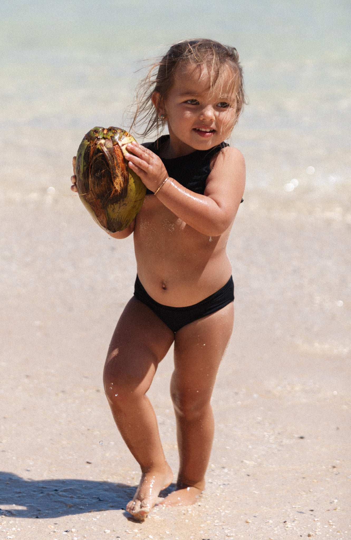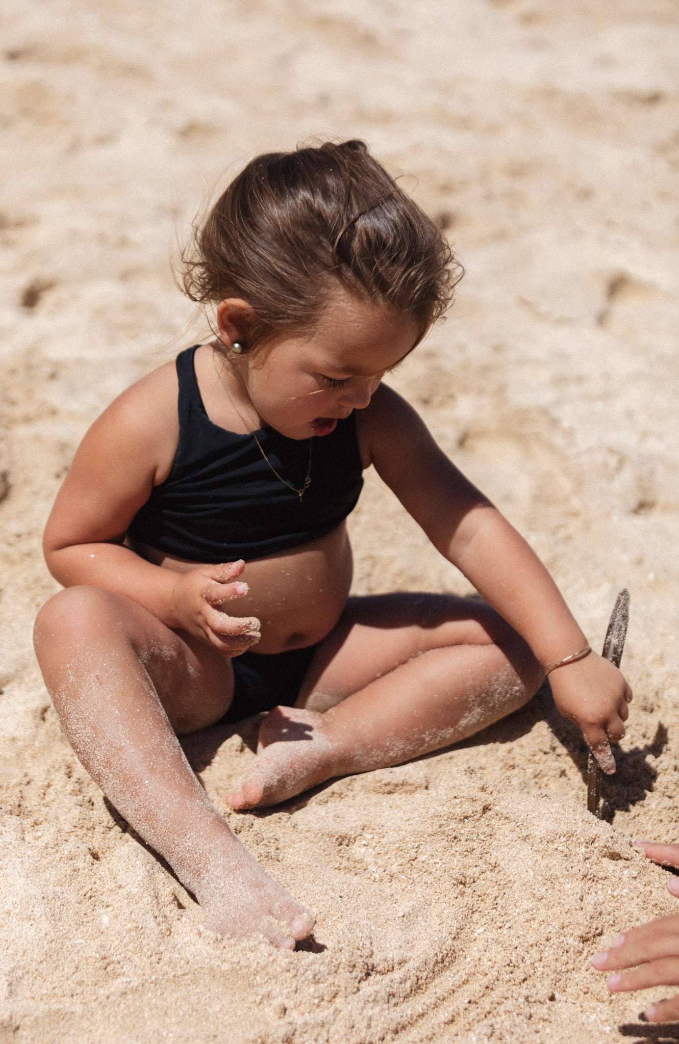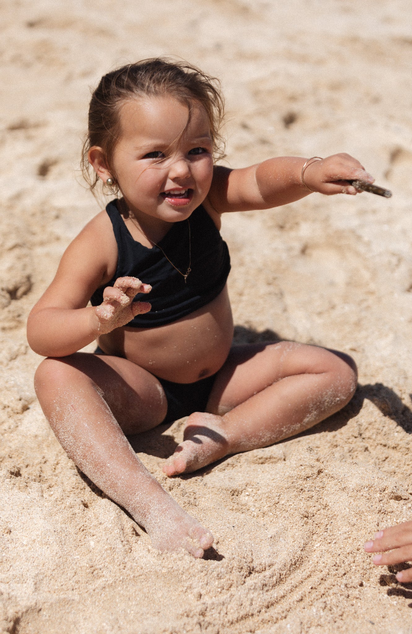 Elevate your little one's beach style with our Keiki High Neck Top and Brief Bottom set, designed to match mom's ensemble from the L'amour collection. This chic two-piece offers modern flair and sun protection, perfect for your daughter to shine under the sun. Ideal for moms who want their daughters to match their style while enjoying sunny days together.