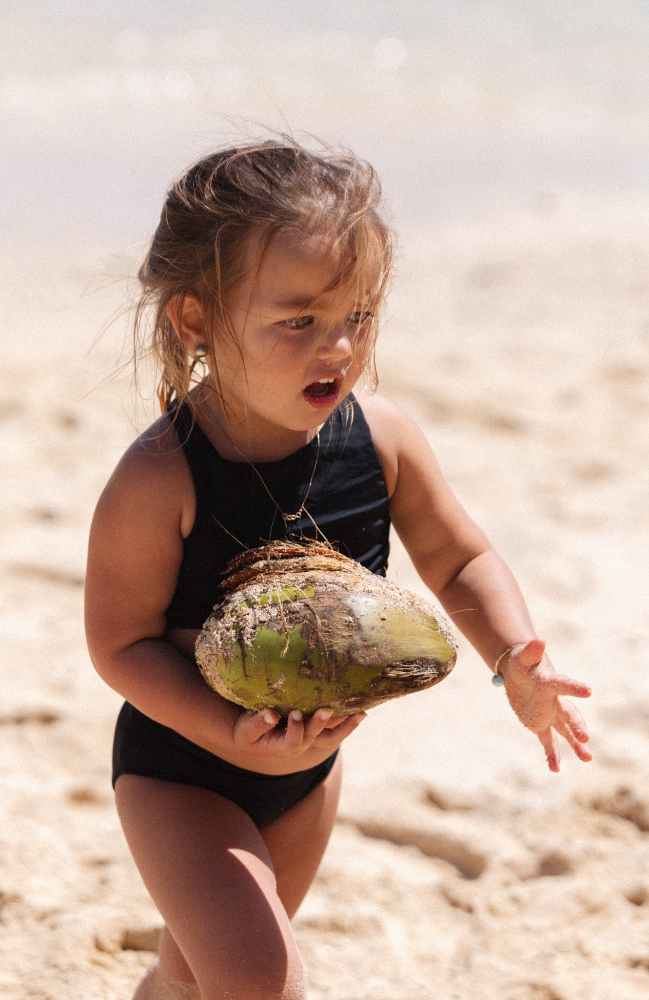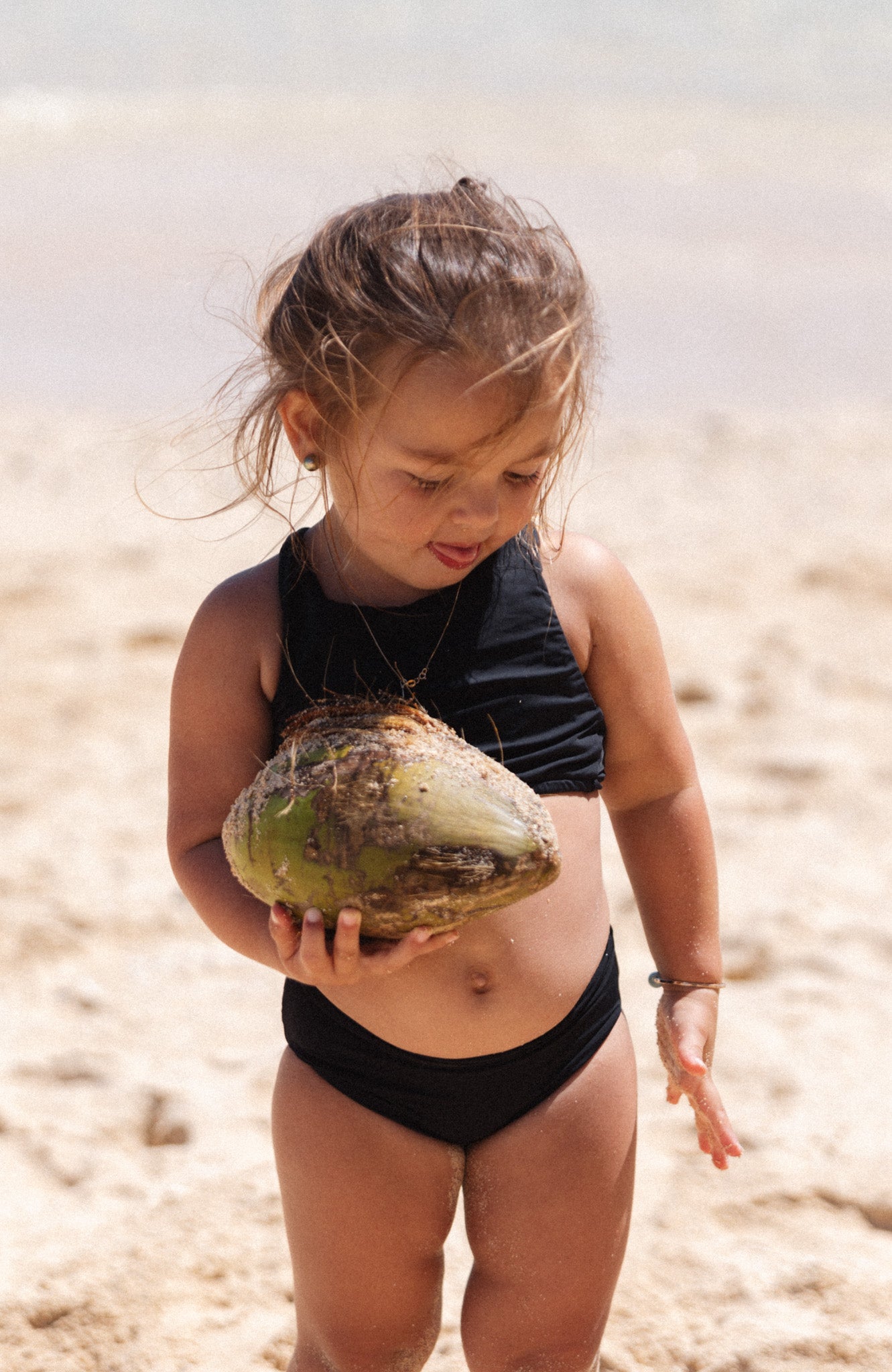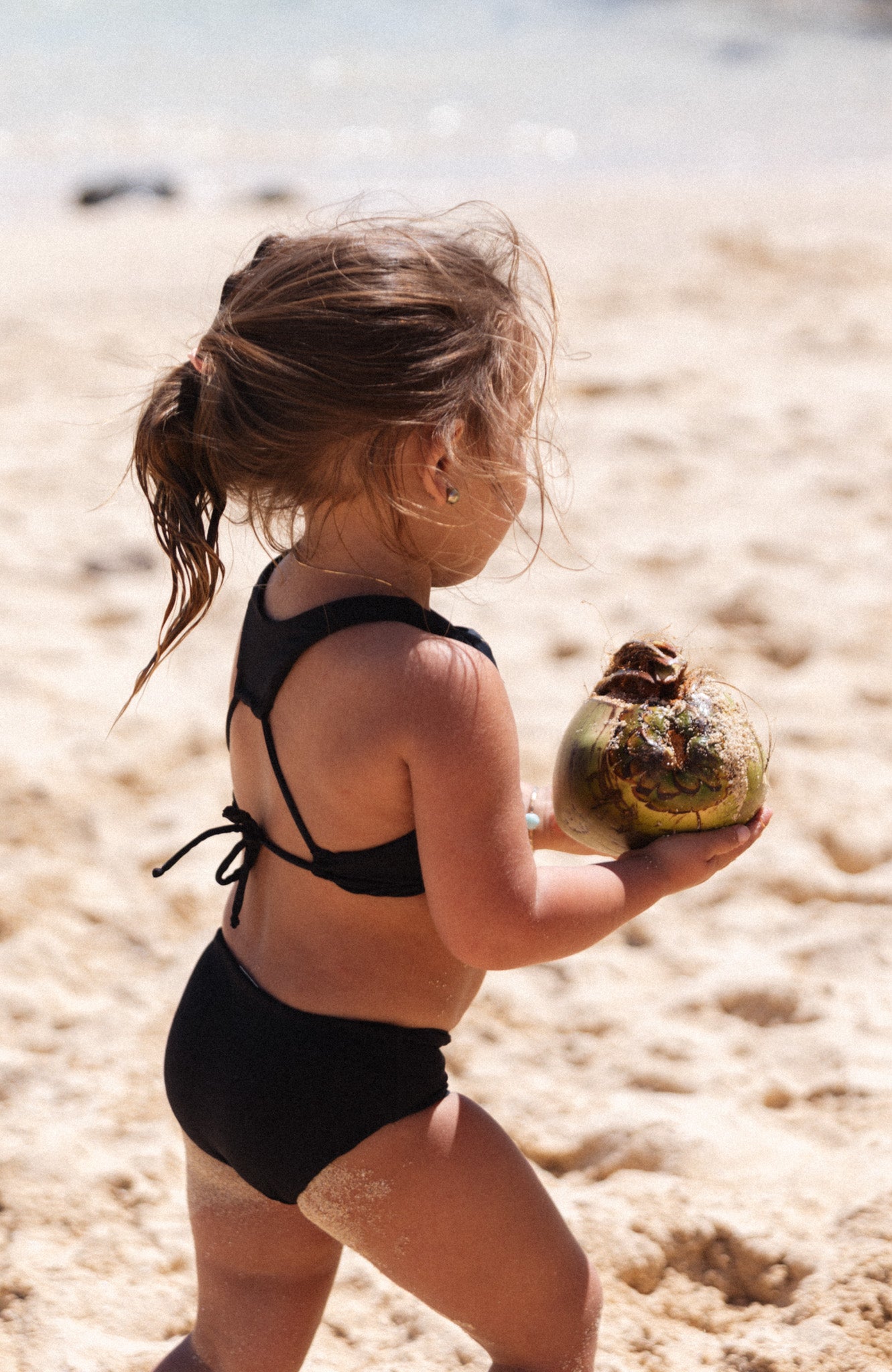 Elevate your little one's beach style with our Keiki High Neck Top and Brief Bottom set, designed to match mom's ensemble from the L'amour collection. This chic two-piece offers modern flair and sun protection, perfect for your daughter to shine under the sun. Ideal for moms who want their daughters to match their style while enjoying sunny days together.