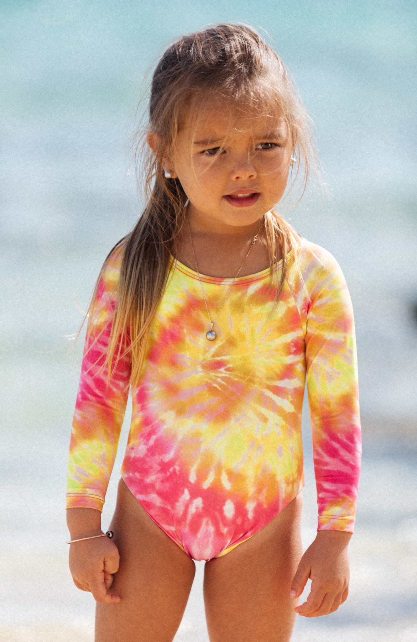 Keiki Long Sleeve One Piece Swimsuit from the Paradiso collection! Crafted for matching mom's ensemble, this delightful swimsuit combines modern style with enhanced sun protection. The long-sleeve design ensures optimal coverage, offering both style and functionality. It's perfect for moms and daughters looking to match and enjoy some fun in the sun together.