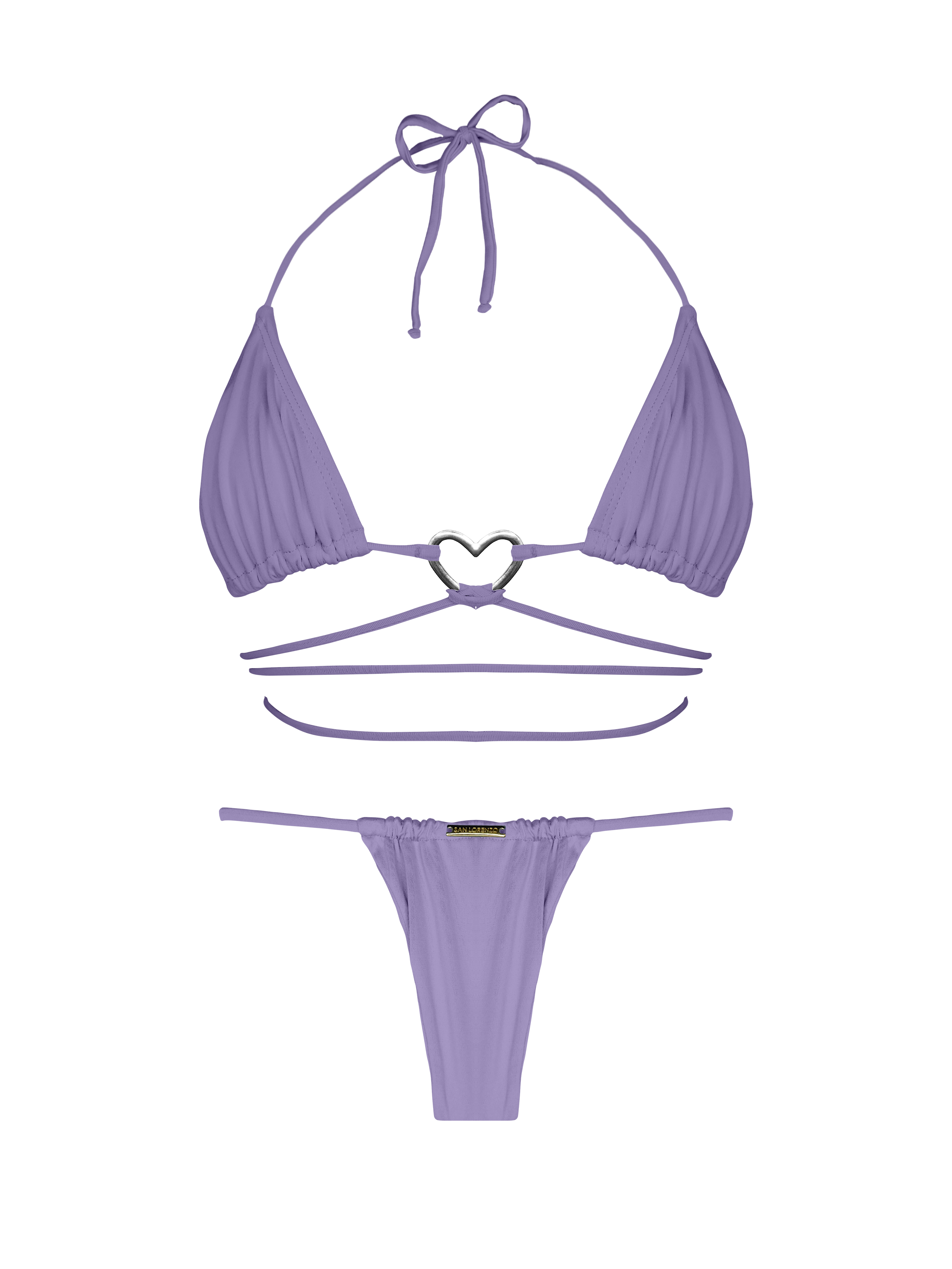 The Multi String Bikini Top is a playful twist on our classic triangle halter tops. This bikini boasts a silver heart accent and offers an additional string for versatile styling options. Your creativity decides how you personalize this top!
