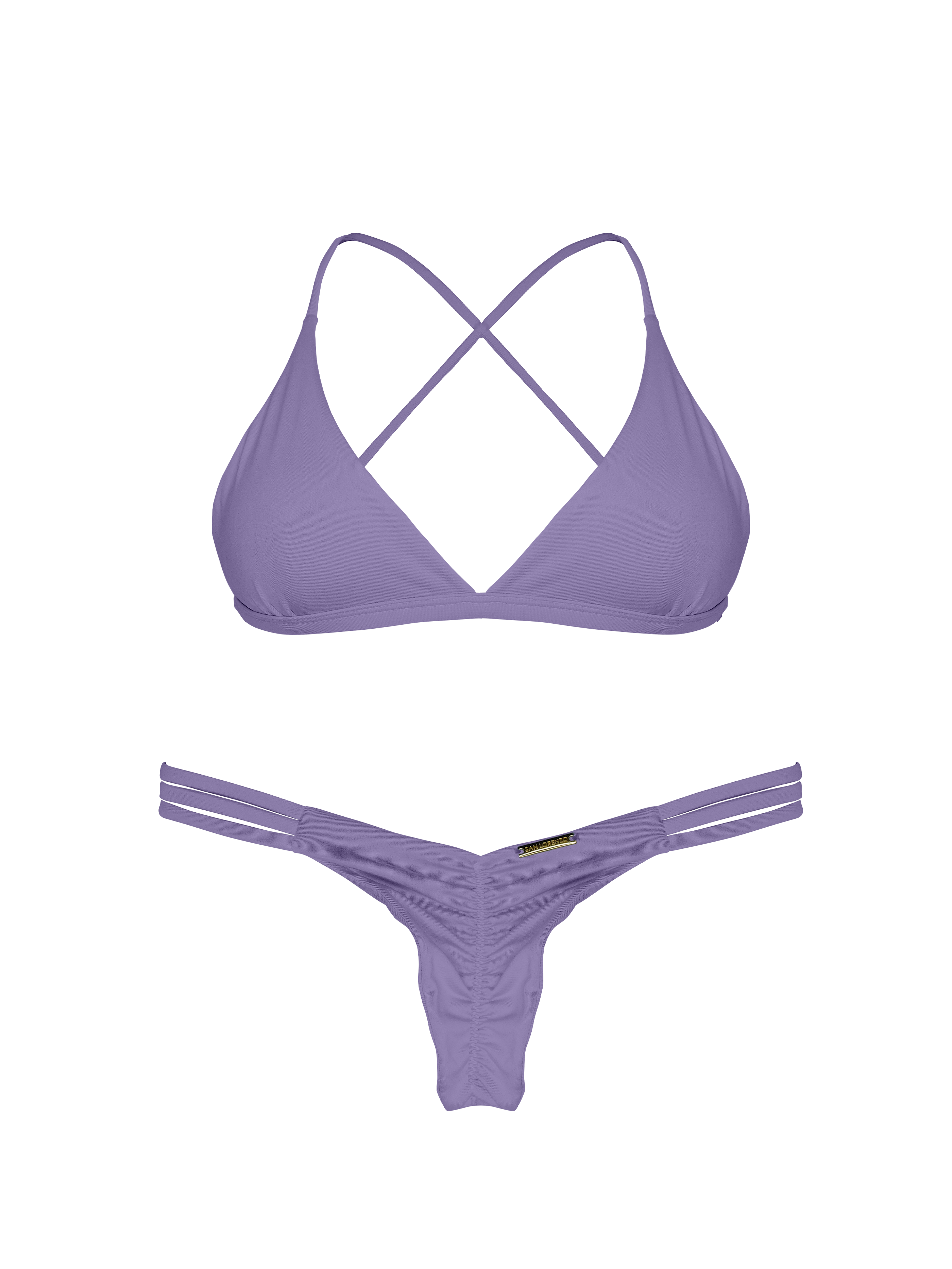 Essential Solids Gray Violet Ruched Hipster Strap Bikini Bottom