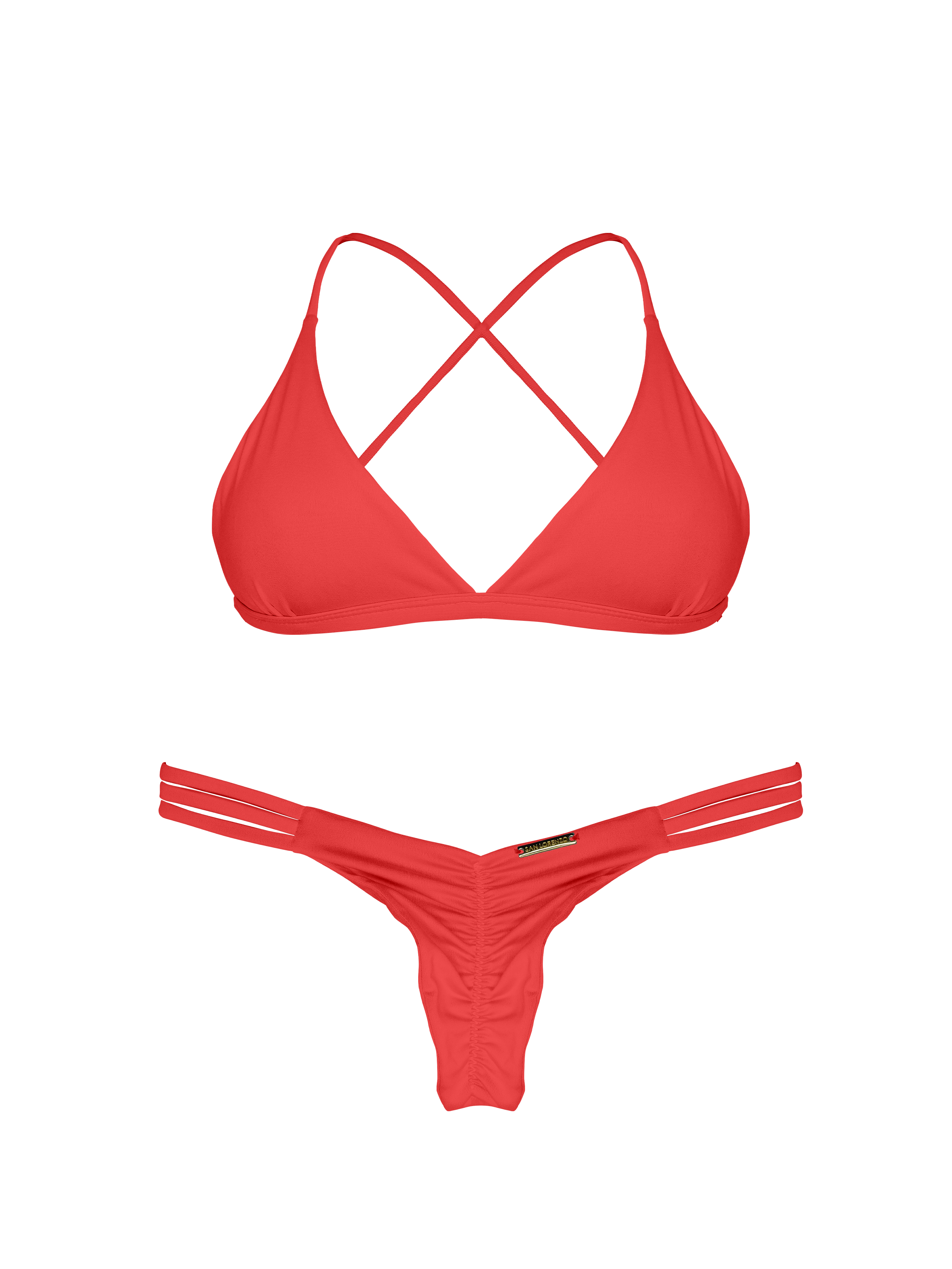 An SL fan favorite, the intricate bikini style of the Ruched Hipster Strap Bottom is unstoppable. This thong bottom features three side straps that sit comfortably on the hips and ruching down the center back for a flattering look with minimal coverage.