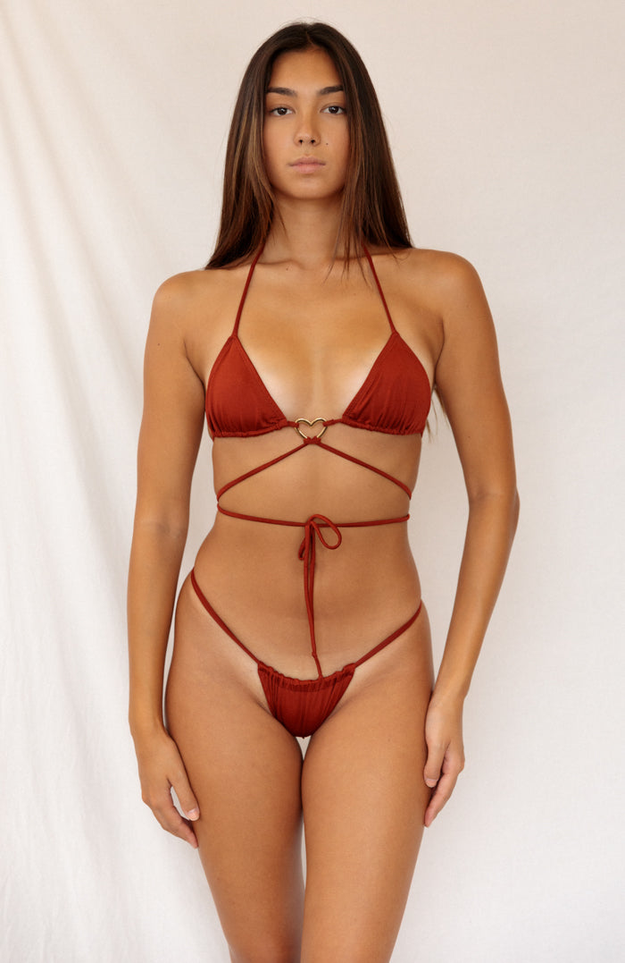 Essential Solids Cocoa Bean Sliding Thong Bikini Bottom