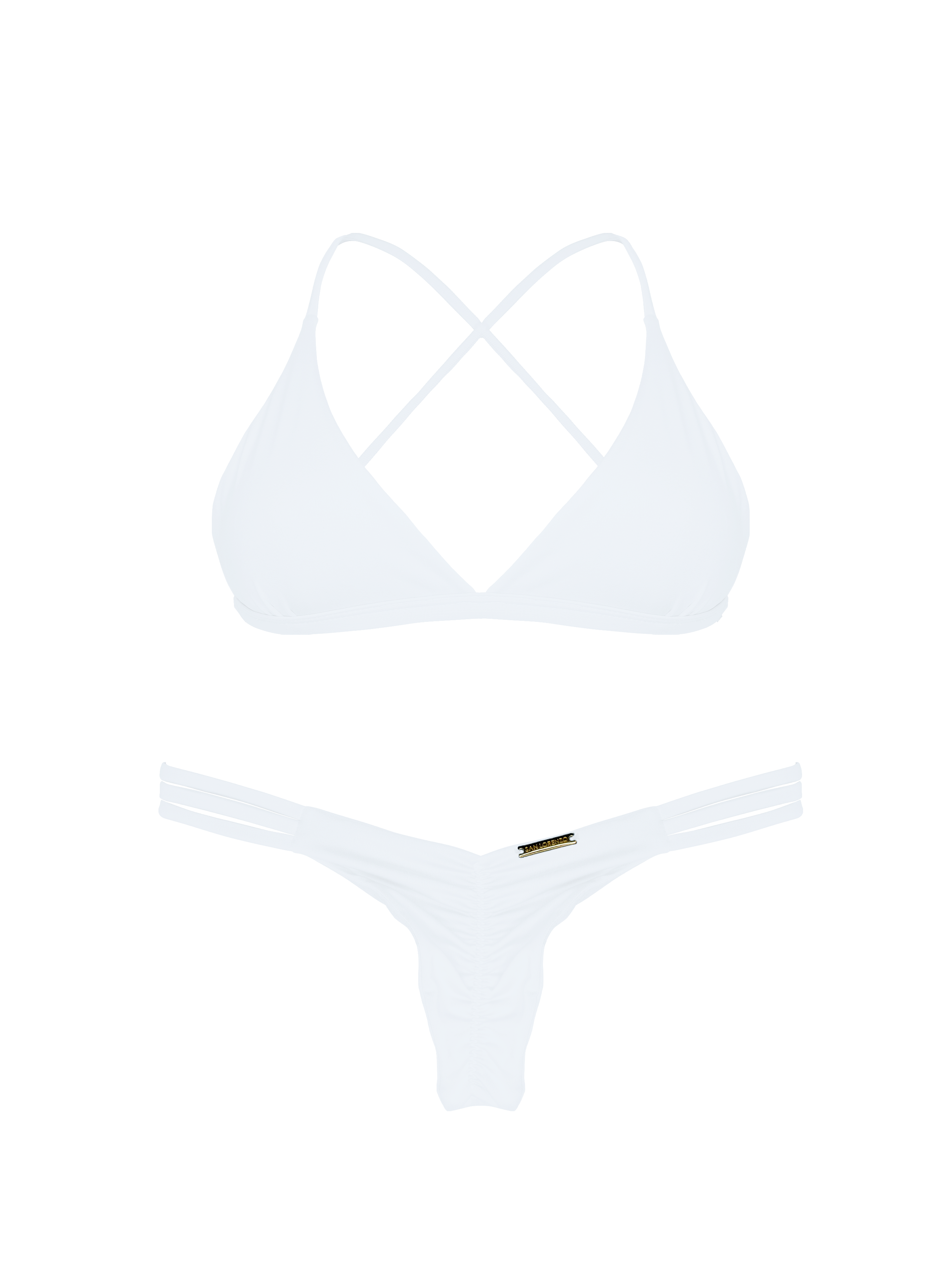 Essential Solids White Pearl Ruched Hipster Strap Bikini Bottom