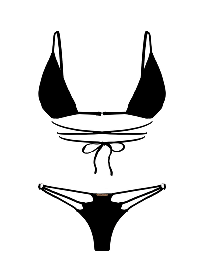 Prepare for a style that's an absolute sensation! This design is guaranteed to make you the center of attention whether you're at the beach or any other setting. Originally our best-seller, we've elevated it even further with the addition of intricate golden detailing along the sides, enabling you to seamlessly transition it into a one-piece ensemble. The top matches the bottom's versatility, boasting a metal detail that invites playful experimentation with its string ties. This kini is more than just swimwear – it's a heartbreaker, destined to leave an indelible impression wherever you venture.