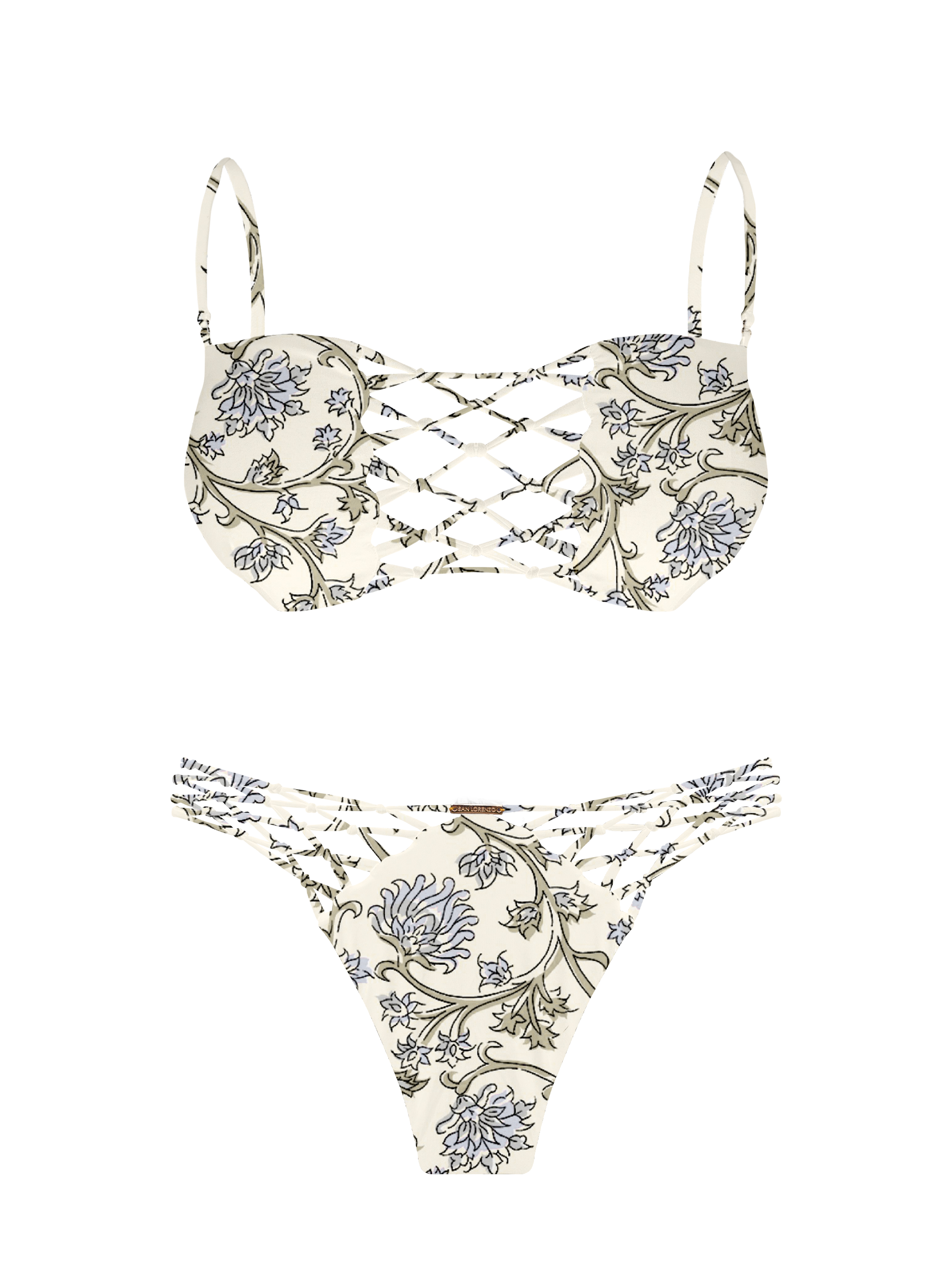 This stunner has perfected the art of capturing attention. It's the embodiment of our signature 'wow' factor, distinguished by its meticulously hand-knotted craftsmanship. Mesh detailing graces both the upper and lower portions, creating an exquisite texture. The bandeau-style top features the mesmerizing knotted mesh detail, complemented by adjustable straps that offer versatility – and if you prefer, they can be detached for a different look. The epitome of elegance with a touch of allure.