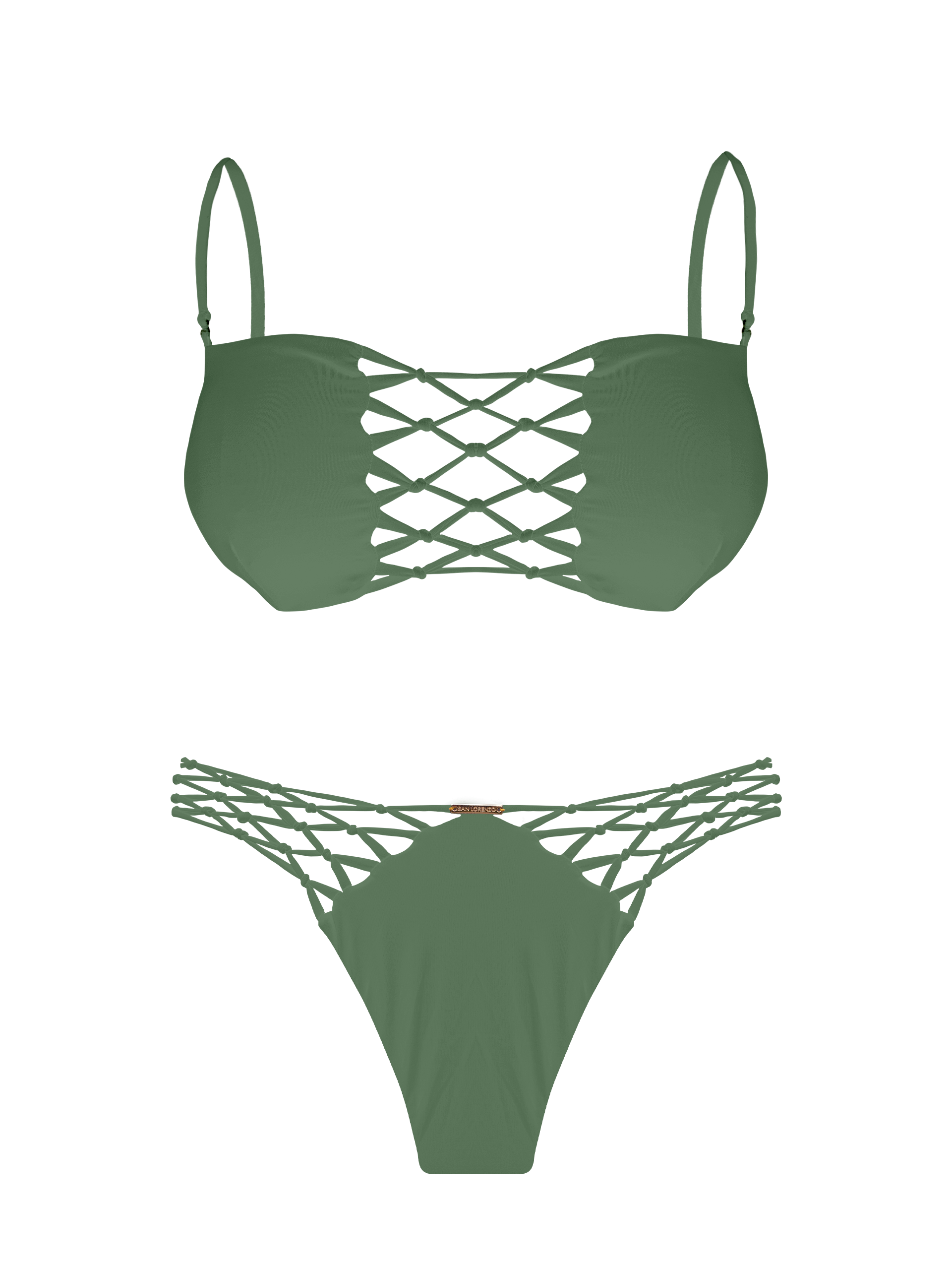This stunner has perfected the art of capturing attention. It's the embodiment of our signature 'wow' factor, distinguished by its meticulously hand-knotted craftsmanship. Mesh detailing graces both the upper and lower portions, creating an exquisite texture. The bandeau-style top features the mesmerizing knotted mesh detail, complemented by adjustable straps that offer versatility – and if you prefer, they can be detached for a different look. The epitome of elegance with a touch of allure.